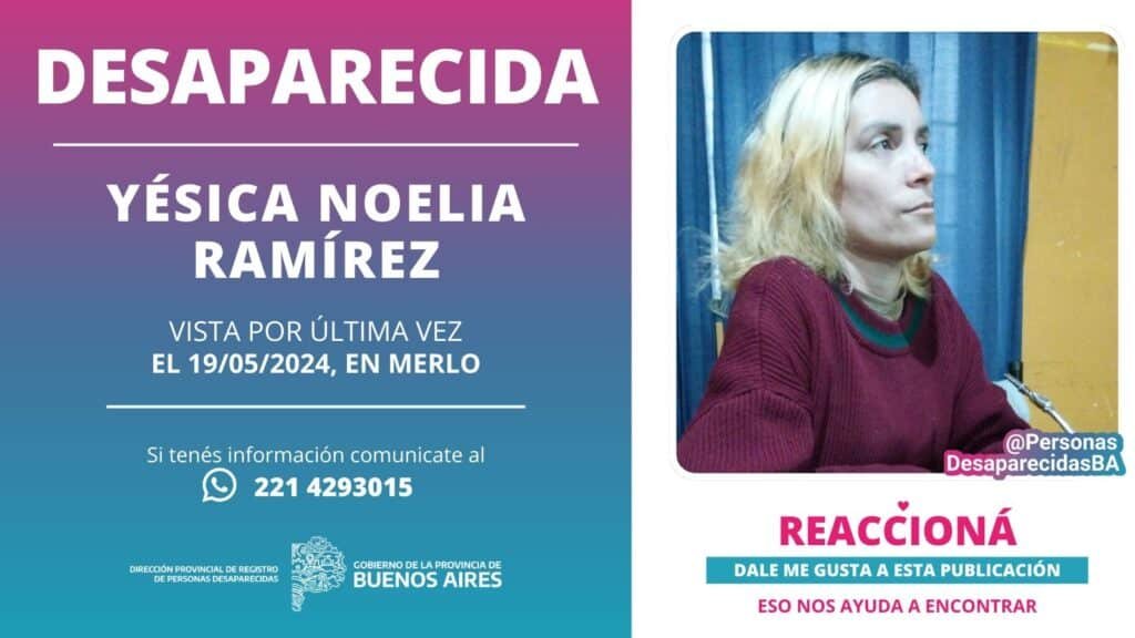 Se trata de Yésica Noelia Ramírez, cuya ausencia preocupaba, sobre todo, porque necesita asistencia médica y farmacológica.