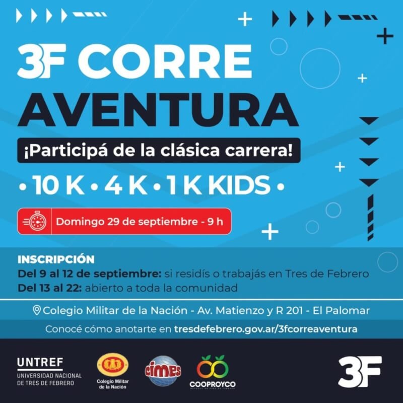 Está abierta la inscripción de una nueva edición de 3F Corre Aventura, la carrera que todos los atletas y amantes del deporte están esperando para disfrutar de una jornada llena de adrenalina. La competencia de obstáculos se realizará el domingo 29 de septiembre a las 9 h en el colegio Militar de la Nación (Av. Matienzo y Ruta 201 – El Palomar).