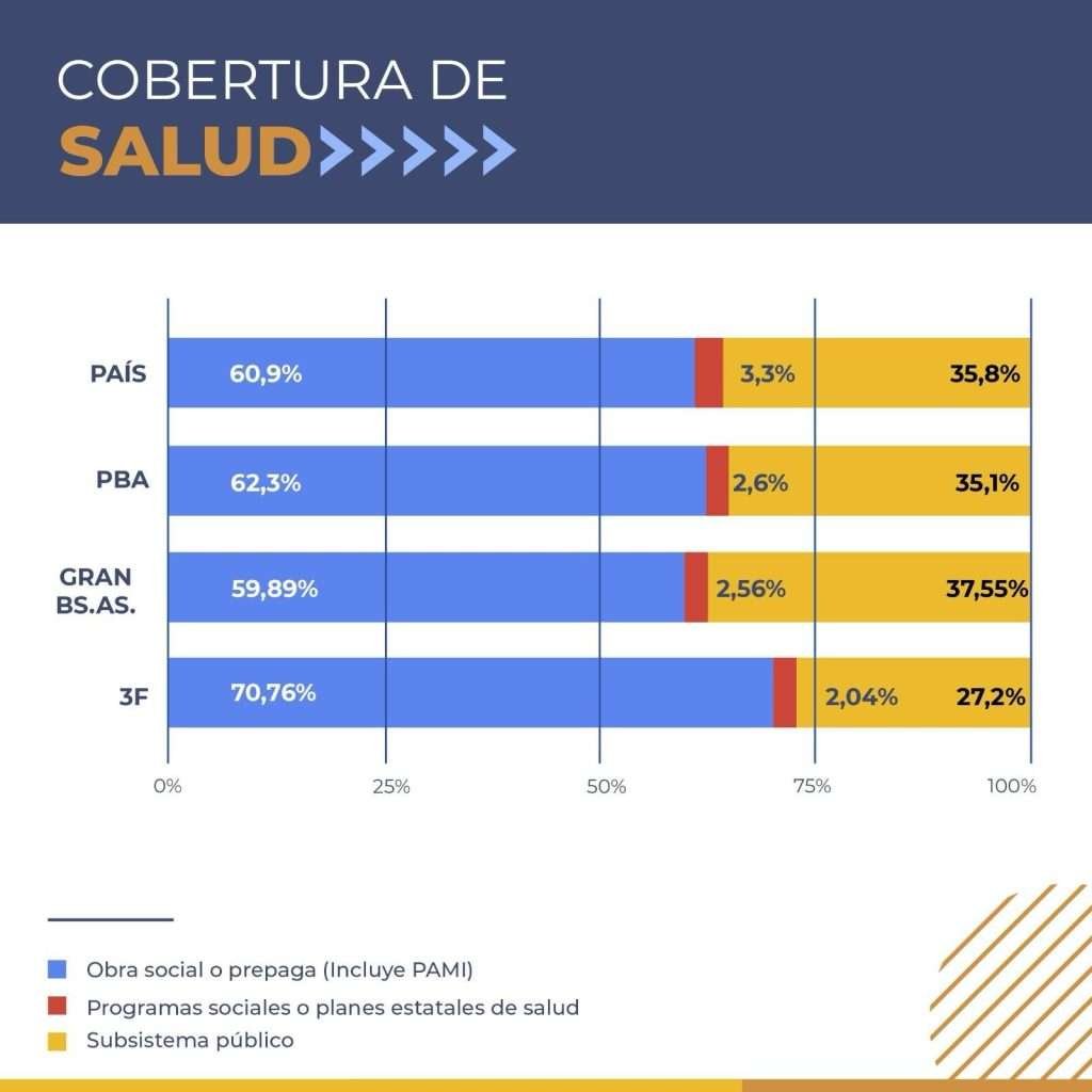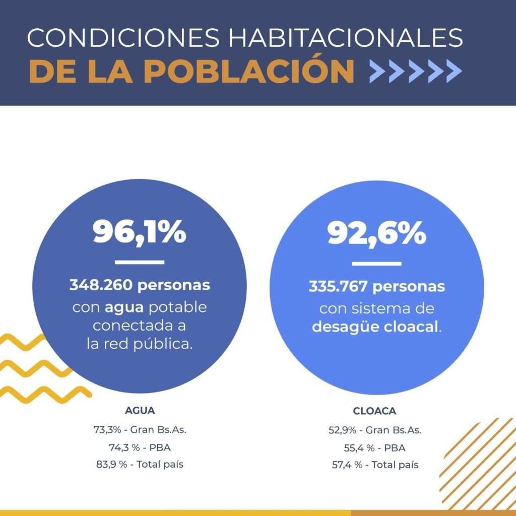El distrito cuenta con más del 90% de su población con acceso a agua potable de red y cloacas, por encima de la media del país, de la provincia y del conurbano. En tanto, el 94,5% de la población cuenta en su casa con un celular con internet. Además 3F se encuentra también por encima de la media en cantidad de habitantes con medicina prepaga y obra social (incluyendo PAMI)