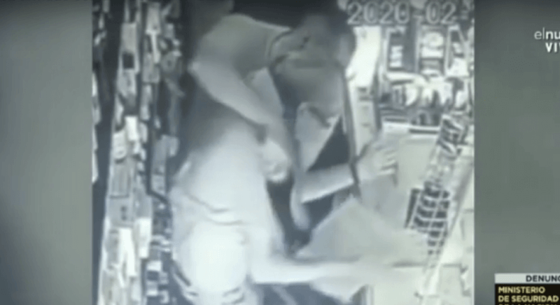El violento robo ocurrió este miércoles en una despensa de la calle El Atamisque, en la localidad de Ciudad Evita, en La Matanza. En las imágenes, registradas por cámaras de seguridad, se puede ver como el almacenero fue tomado del cuello por el delincuente a pesar de no mostrar resistencia.