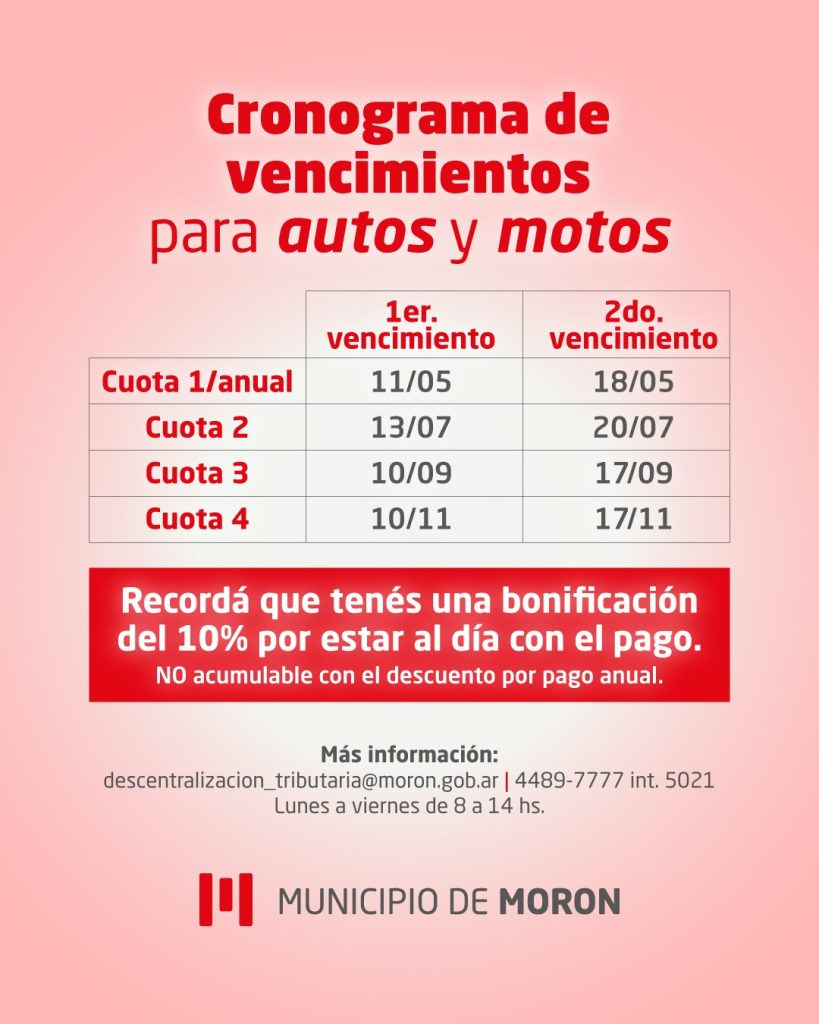 El Municipio de Morón brinda a las y los contribuyentes importantes beneficios por cumplimiento y pago anticipado del Impuesto Automotor, con el objetivo de facilitar el acceso a descuentos y promover el pago en término.