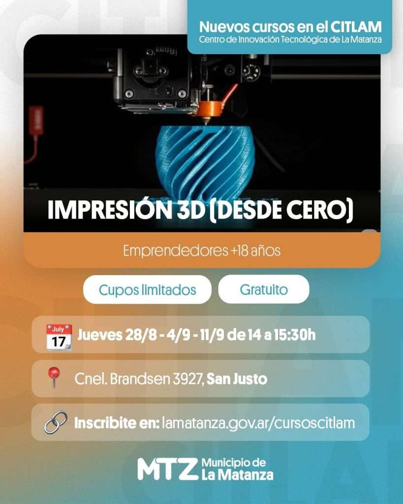 En esta oportunidad se abre la inscripción para un nuevo curso dirigido a emprendedores y vecinos mayores de 18 años, interesados en incorporar habilidades tecnológicas: IMPRESIÓN 3D desde cero.