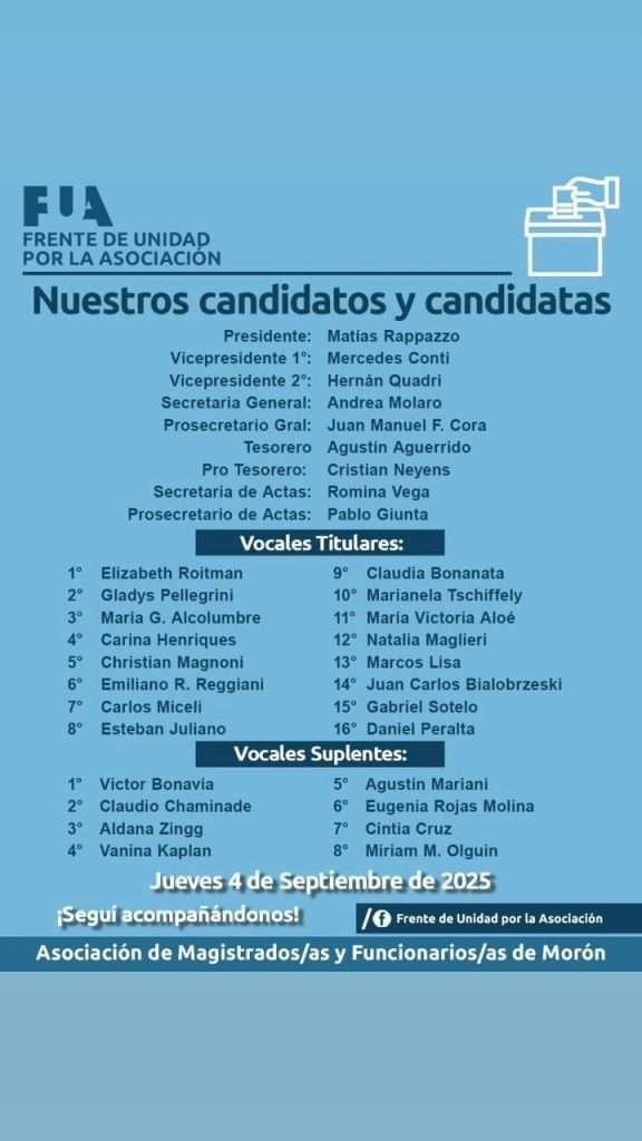 El fiscal Matías Rappazzo revalidó su cargo al frente de la Asociación de Magistrados/as y Funcionarios/as del Departamentos Judicial de Morón. Con lista única, este jueves los asociados se volcaron a las urnas para acompañar la nómina “Frente de Unidad por la Asociación” que se caracterizó por la paridad de género.