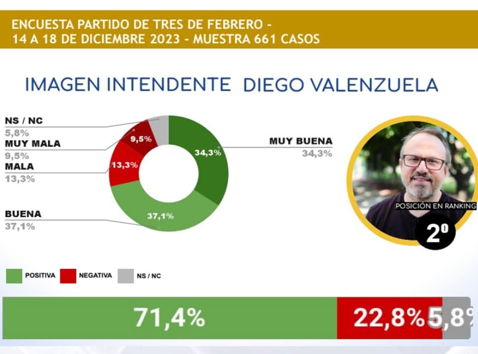 Imagen comparativa de porcentajes del Intendente de Tres de Febrero, Diego Valenzuela