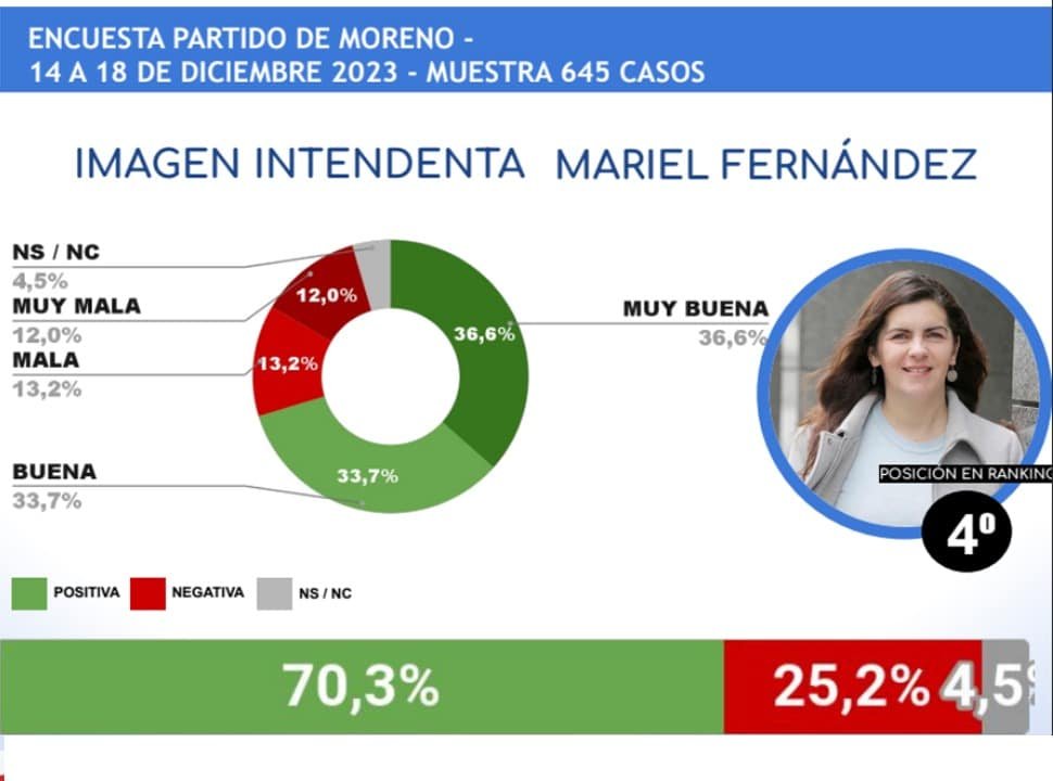 En cuanto a los jefes comunales, en zona oeste se destacan Diego Valenzuela de Tres de Febrero y Mariela Fernández de Moreno: ambos cosechan más del 70 por ciento de imagen positiva entre sus vecinos. Con el 71,4%, Valenzuela es el segundo alcalde con mejor imagen de todo el Conurbano, mientras que la morenense Fernández ostenta el cuarto lugar con el 70,3%.