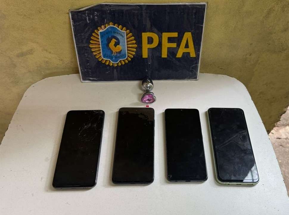 De acuerdo al comunicado, durante los allanamientos se incautaron: 18 plantas de marihuana de 1,5 metros de altura; 18 teléfonos celulares; equipos electrónicos: 3 CPU, 4 notebooks, 8 pendrives, 1 tablet, 1 módem portátil, 1 decodificador smart, 1 computadora all-in-one, 10 CDs y 7 disquetes.