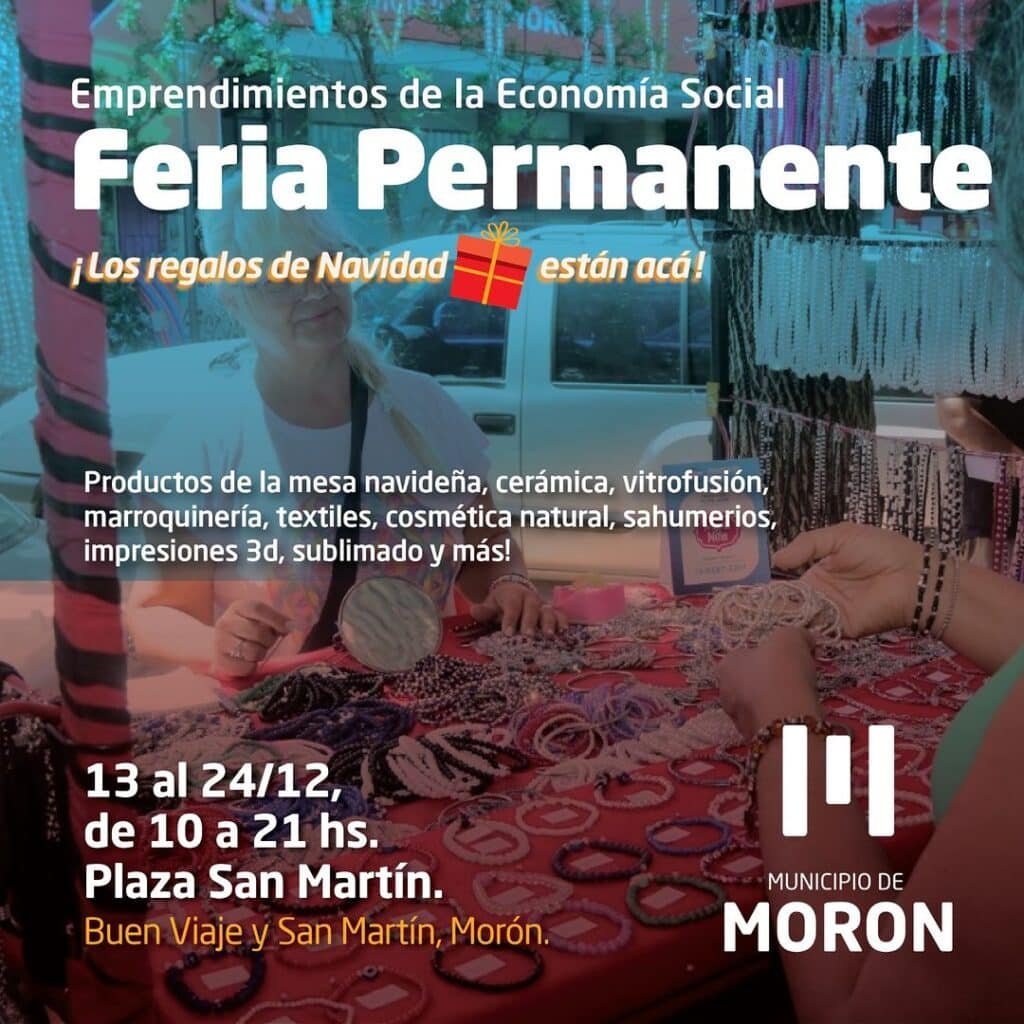 El municipio de Morón informó que hasta el 24 de diciembre de 10 a 21 en Plaza San Martín, Buen Viaje y San Martín, habrá feria permanente con el objetivo de que los vecinos puedan acceder a productos navideños a precios más económicos.