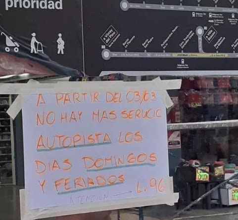 Desde el domingo 3 de marzo, la línea 96 de la empresa Transporte Ideal San Justo SA suspendió su servicio que va por autopista a Constitución, los días domingos y feriados. Se trata de un “recorte de servicio” y por el momento no hay fecha para su restablecimiento.