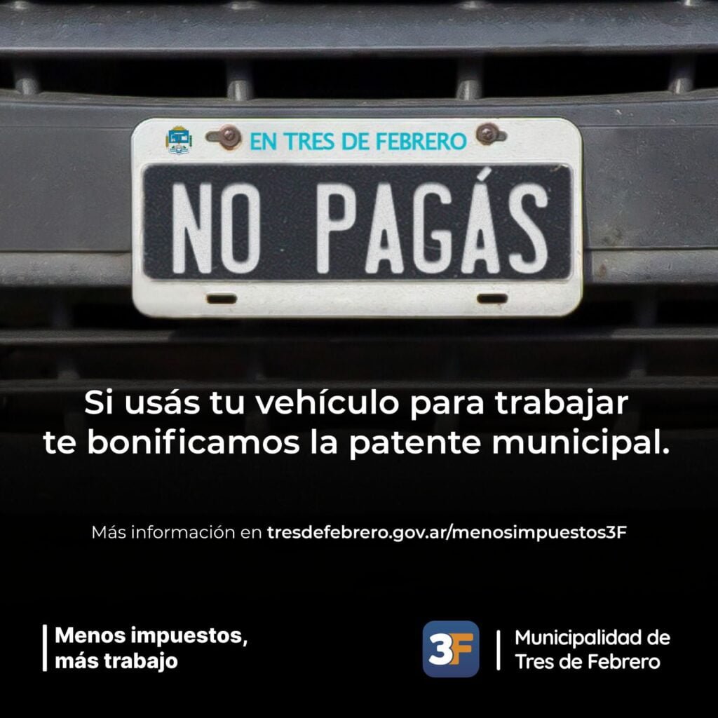 Luego de ser aprobada en el Honorable Concejo Deliberante la nueva ordenanza, quienes usen sus vehículos para trabajar tendrán bonificada la patente por lo que resta del año. Esta medida tiene como objetivo seguir acompañando el esfuerzo de los que trabajan: “Priorizamos que cada vecino pueda prosperar con un estado que lo entienda y estimule la creación de empleo. Es un momento para apuntalar al que busca salir adelante”, destacó el intendente Diego Valenzuela.