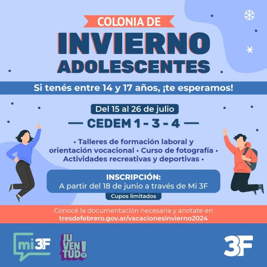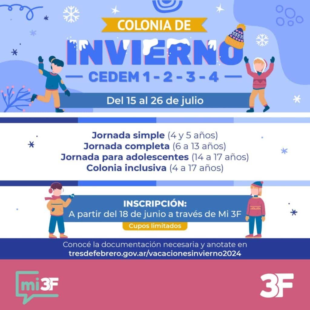 Inscribí a los más chicos a la colonia de invierno por medio de la plataforma Mi3F. La misma se realizará del 15 al 26 de julio, es gratuita y los cupos son limitados.
