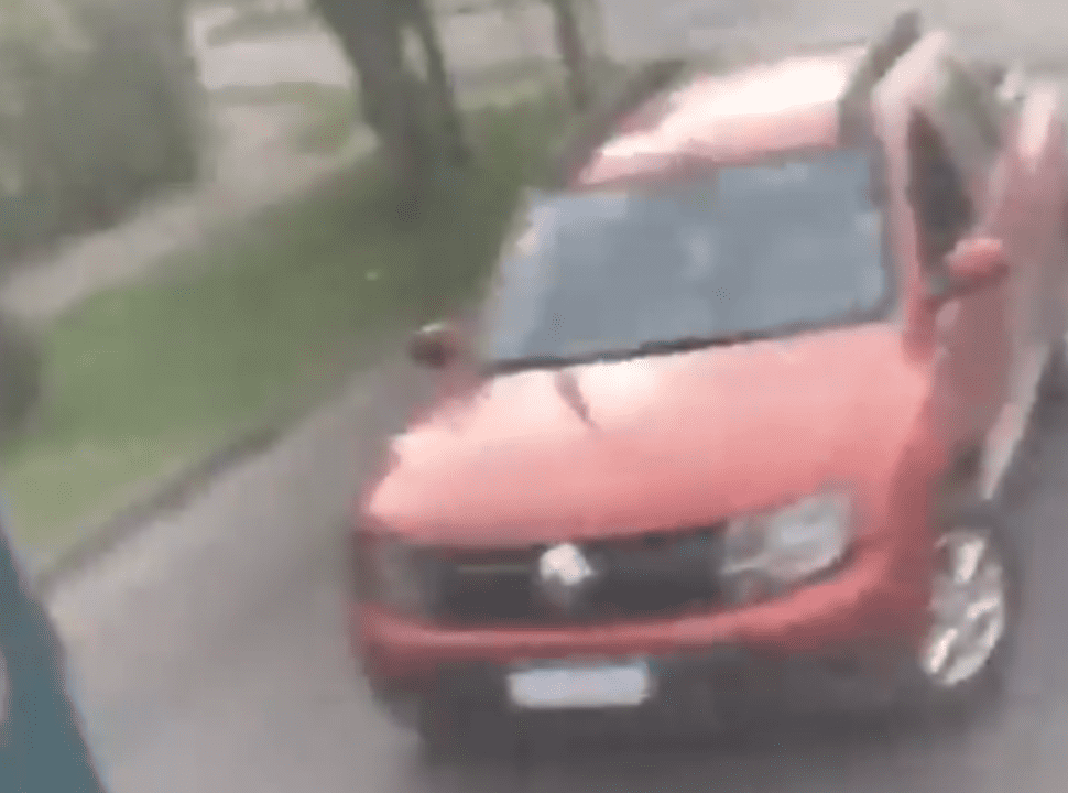 En la grabación, se puede ver como una camioneta Renault Duster Oroch de color rojo persigue por varias cuadras al colectivo, hasta que le da alcance, lo bloquea y el conductor, con un elemento contundente, destroza e vidrio del chofer del transporte.